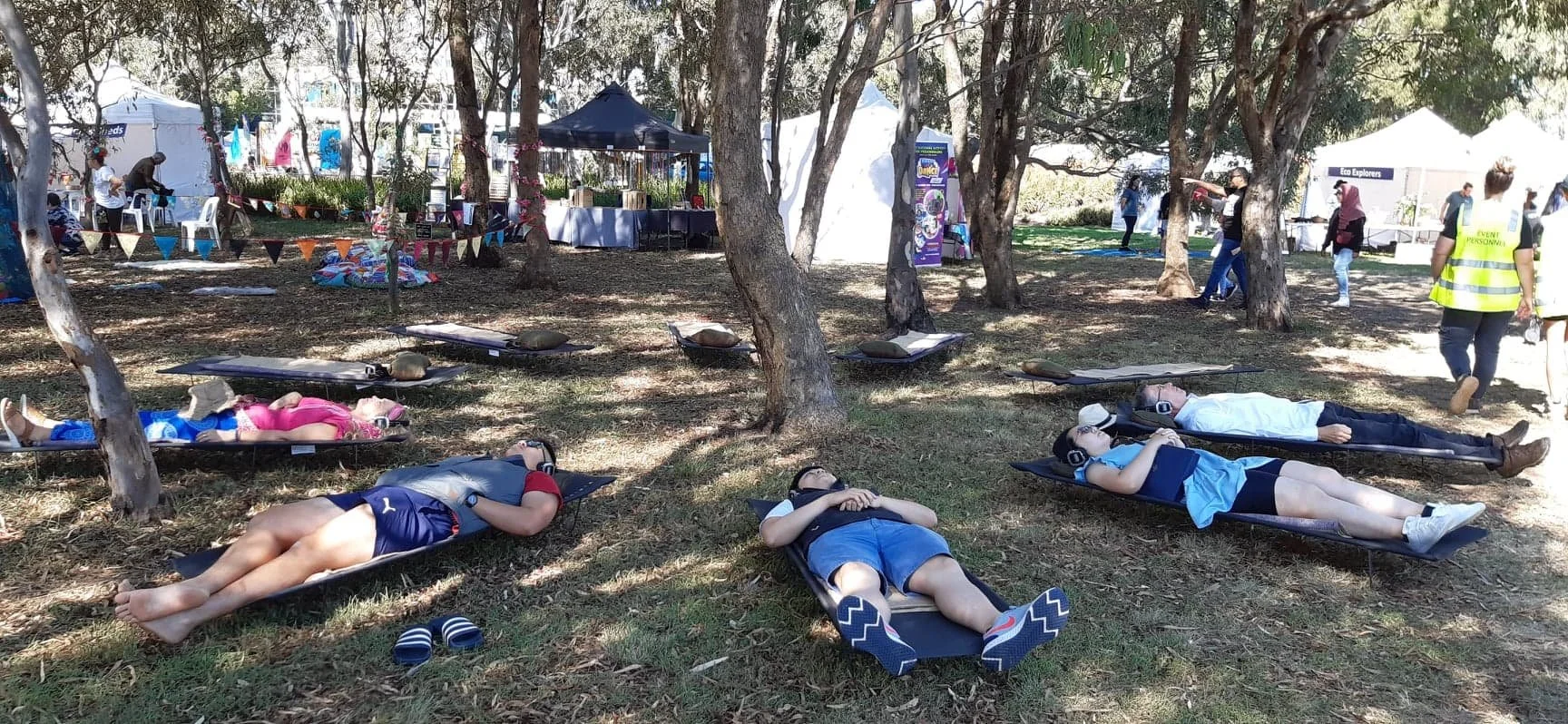 "Dear Tree" is a gentle listening experience - a collection of people's responses to trees, acknowledging and contemplating the position of nature within our lives. Listeners lie together, circling a tree, looking up through the canopy and absorbing through headphones, spoken words... words spoken dearly to trees by local community participants.